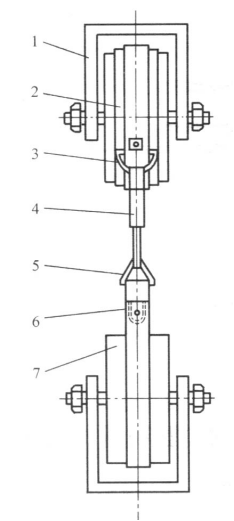 1一夾具;2一安全帶;3—半圓環(huán);4—鉤;5一三角環(huán);6一帶;7一木輪